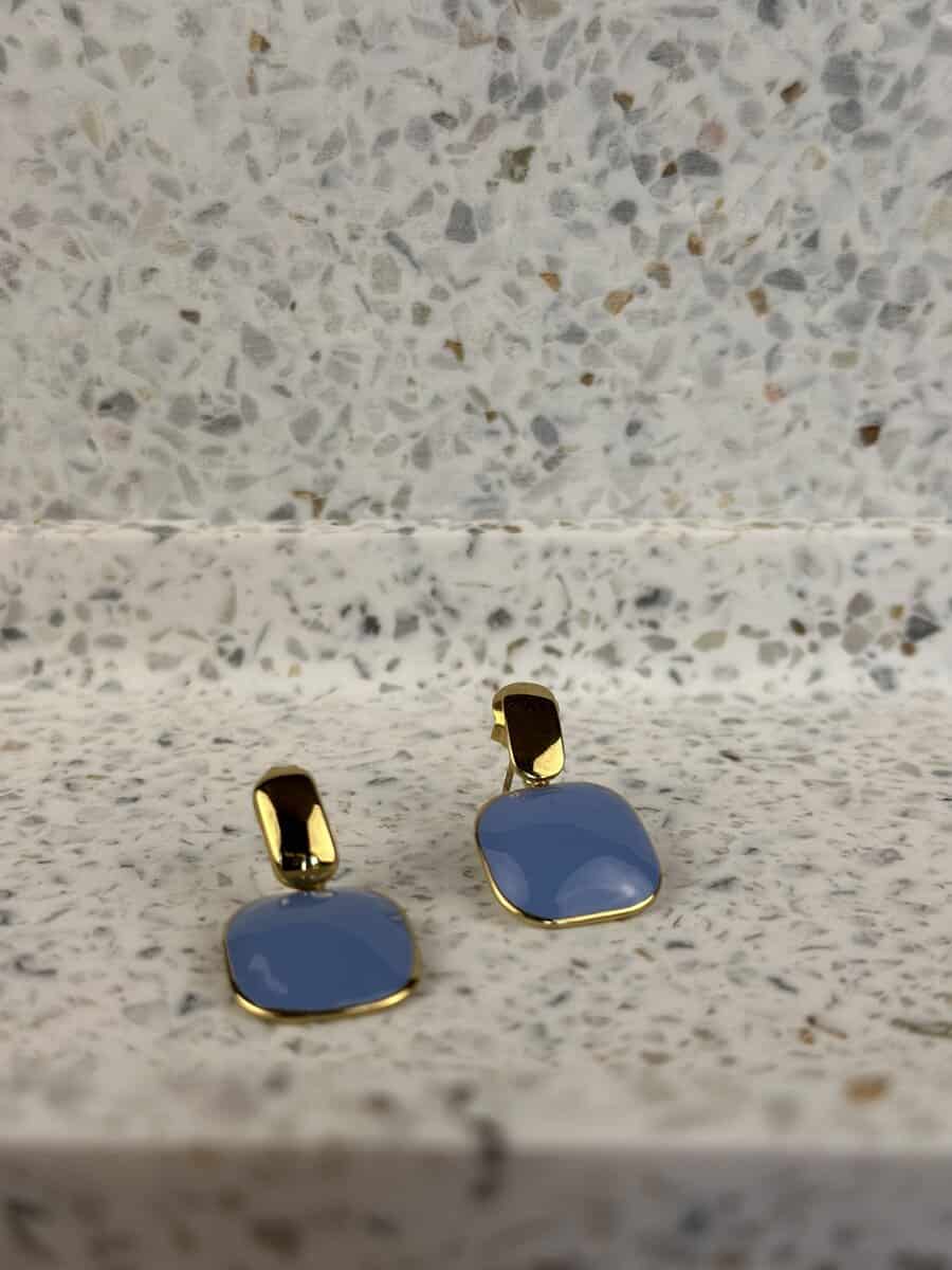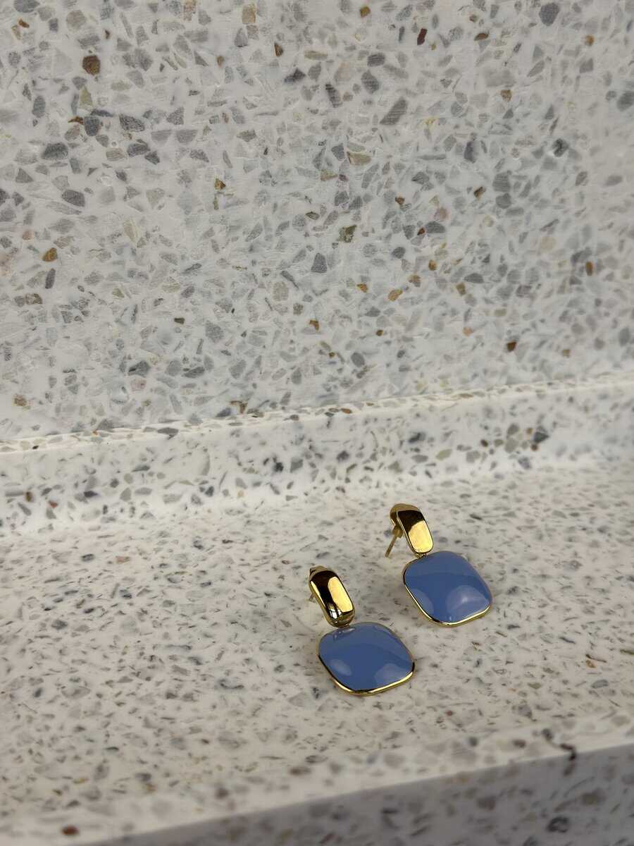 Minimal αλλά γεμάτα χαρακτήρα, τα Azure σκουλαρίκια είναι το απόλυτο pop of color που χρειάζεται κάθε εμφάνιση. Το απαλό μπλε σμάλτο σε συνδυασμό με το χρυσό φινίρισμα αποπνέει μια αίσθηση ανεμελιάς, σαν καλοκαιρινός ουρανός. Φόρεσέ τα με τζιν και πουκάμισο ή ένα λευκό φόρεμα για effortless chic vibes.