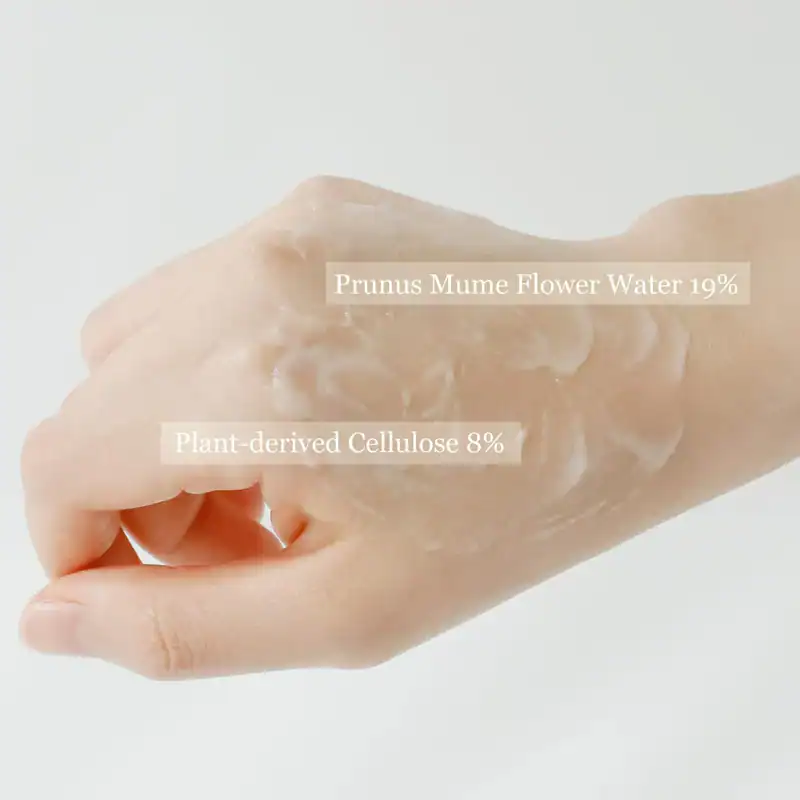 Water, Prunus Mume Flower Water, Cellulose, Methypropandiol, 1,2-Hexandiol, Carbomer, Arginine, Ethylhexylglycerin, Allantoin, Sorbitol, Pyrus Malus (Apple) Fruit Extract, Camellia Sinensis Leaf Extract, Houttuynia Cordata Extract, Nelumbo Nucifera Flower Extract, Oryza Sativa (Rice) Extract, Prunus Mume Fruit Extract, Vaccinium Angustifolium (Blueberry) Fruit Extract, Butylene Glycol, Disodium EDTA