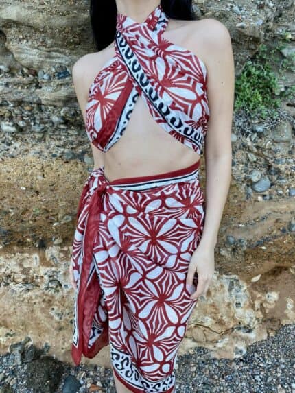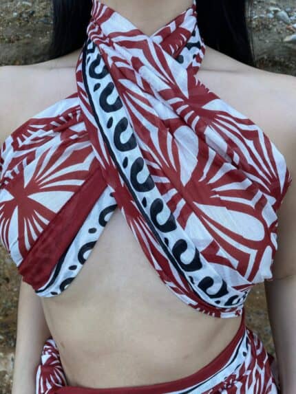 Το παρεό Sahara Bloom είναι μια ωδή στις καλοκαιρινές αποχρώσεις της ερήμου και στα έντονα, καλλιγραφικά μοτίβα που θυμίζουν παραδοσιακή τέχνη. Με γήινες αποχρώσεις, μαύρο ethnic print και αέρινο κόψιμο, είναι ιδανικό για την πόλη, το νησί ή τις πιο στιλάτες αποδράσεις.
