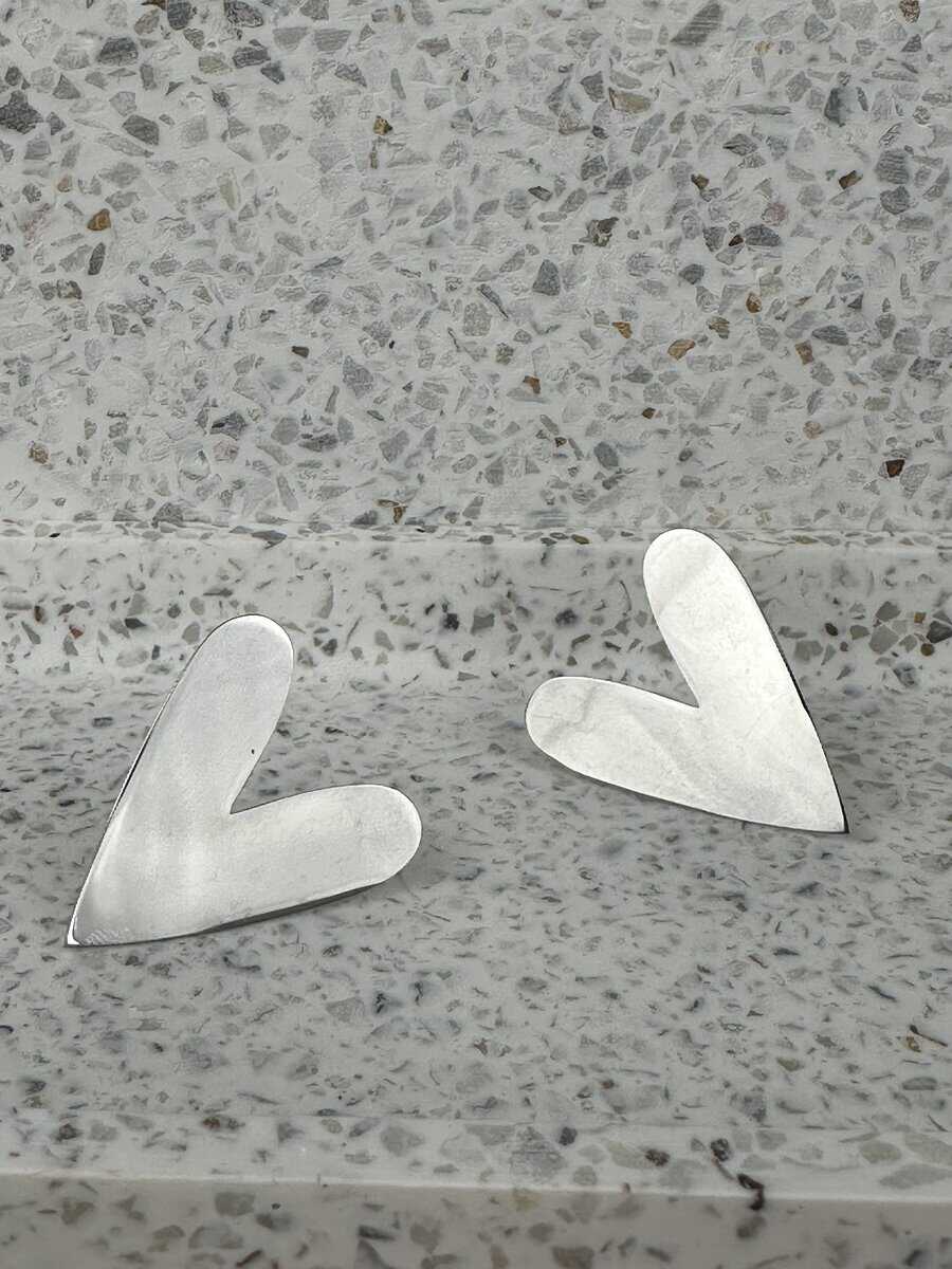 Απλά και εκλεπτυσμένα σκουλαρίκια σε σχήμα καρδιάς, φτιαγμένα από ατσάλι με ασημί φινίρισμα. Ιδανικά για να προσθέσουν μια διακριτική, ρομαντική πινελιά στο στυλ σου.