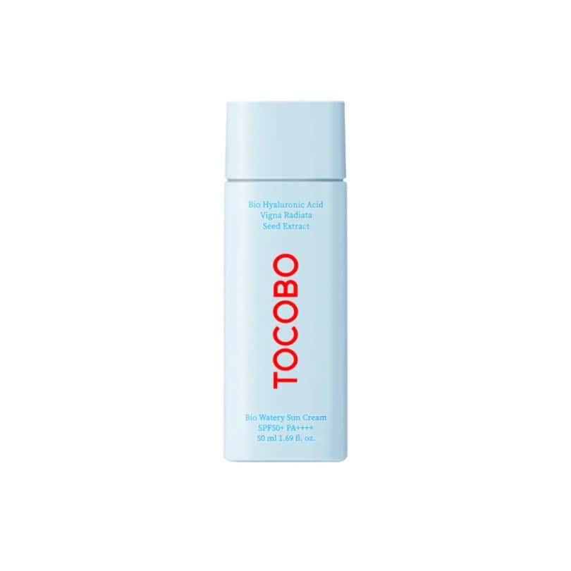 Το Tocobo Bio Watery Sun Cream SPF50 PA++++ περιέχει 1.000ppm εκχύλισμα φασολιών mung για να καταπραΰνει τους ερεθισμούς και να αντιμετωπίζει τις ατέλειες, μαζί με 1.000ppm βιο-υαλουρονικού οξέος για την ενίσχυση της υγρασίας του δέρματος. Η vegan και cruelty-free φόρμουλα είναι υποαλλεργική. Λειτουργεί καλά κάτω από το μακιγιάζ.